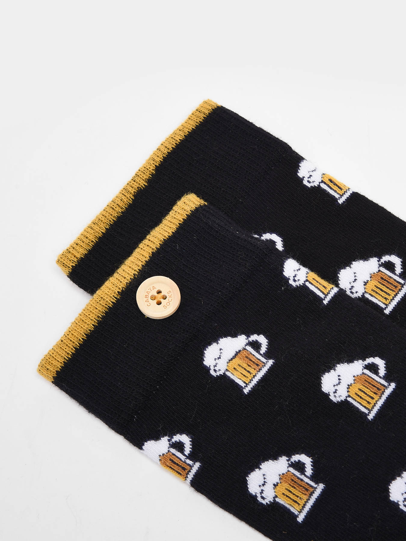 Cabaia et ses chaussettes en coton certifié GOTS ne cesseront jamais de vous séduire. Décorées de chopes de bière, elles iront parfaitement à vos pieds. N'ayez aucune crainte quant à leur potentielle séparation à cause de la machine à laver, la marque a pensé à tout, un système de bouton vous permettra de les attacher l'une à l'autre.