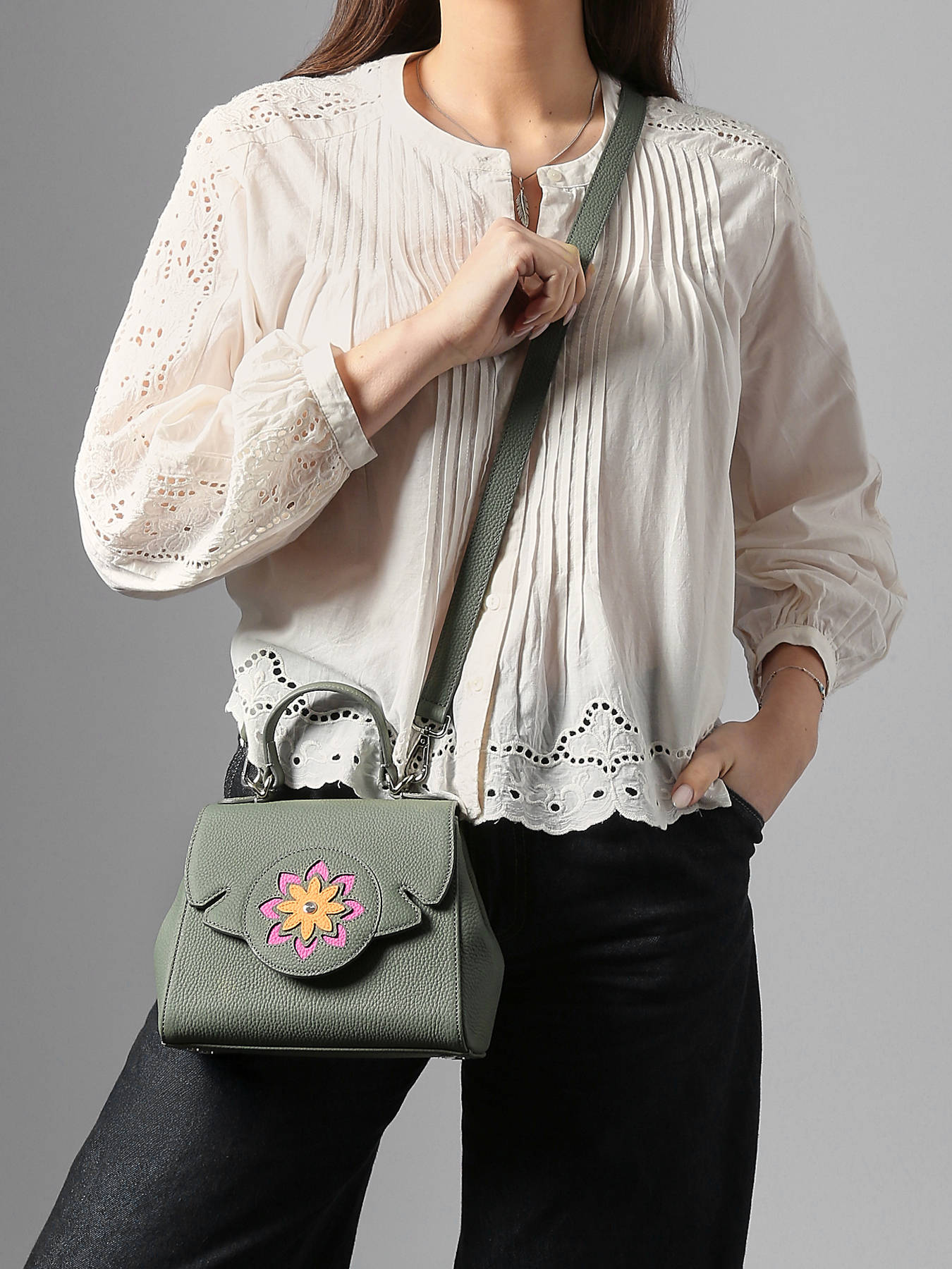 The MANDALA NATHAN BAUME handbag, crafted from high-quality cowhide leather, combines refined elegance with functionality for everyday use or special occasions. Its polished exterior features a flap with a secure clasp, protecting your belongings while adding a chic, contemporary touch. The 7 cm handle and adjustable, removable strap allow versatile wear, by hand or crossbody, offering comfort and freedom of movement according to your needs. Inside, two main compartments are complemented by a zip pocket, providing optimal organization for your essentials and small accessories. Compact yet spacious, this model stands out for its elegant lines and premium leather, offering both durability and character. The MANDALA NATHAN BAUME bag is a stylish and practical companion, perfect for enhancing your looks with sophistication and modernity.