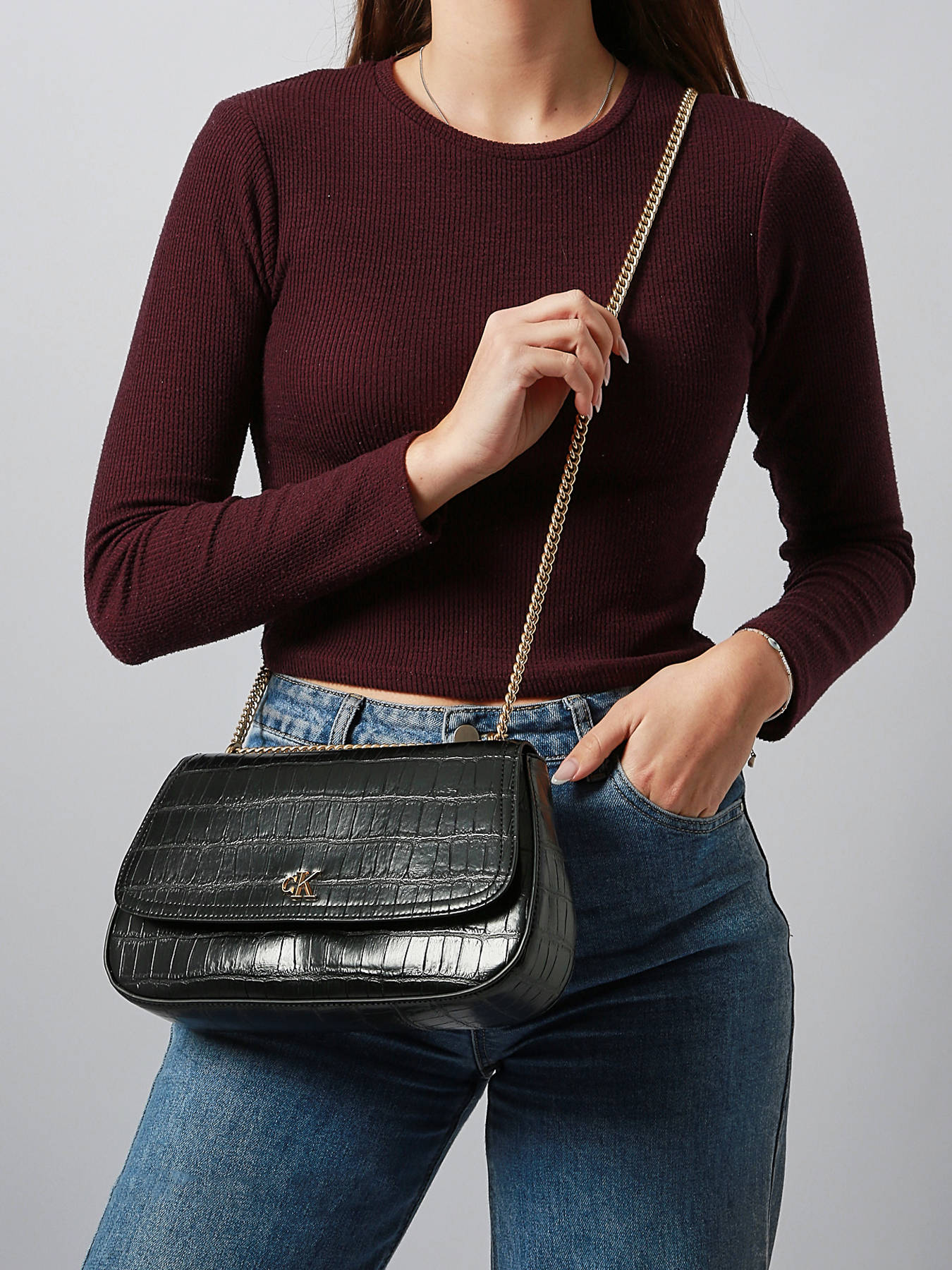 Le sac bandoulière Croc Embossed Mono Calvin Klein Jeans est un accessoire élégant alliant modernité et fonctionnalité. Confectionné en toile enduite, il présente un effet embossé qui apporte une touche de sophistication à votre tenue. La fermeture par rabat à pression assure une sécurité optimale tout en facilitant l’accès à vos affaires. La bandoulière réglable vous permet d’ajuster le porté en bandoulière selon votre confort et votre style. À l’intérieur, vous trouverez un compartiment principal spacieux, une poche simple pour ranger vos petits objets et un emplacement dédié aux cartes bancaires, idéal pour garder vos essentiels organisés et à portée de main. Ce sac compact est parfait pour celles qui recherchent un design tendance sans compromettre la praticité au quotidien.