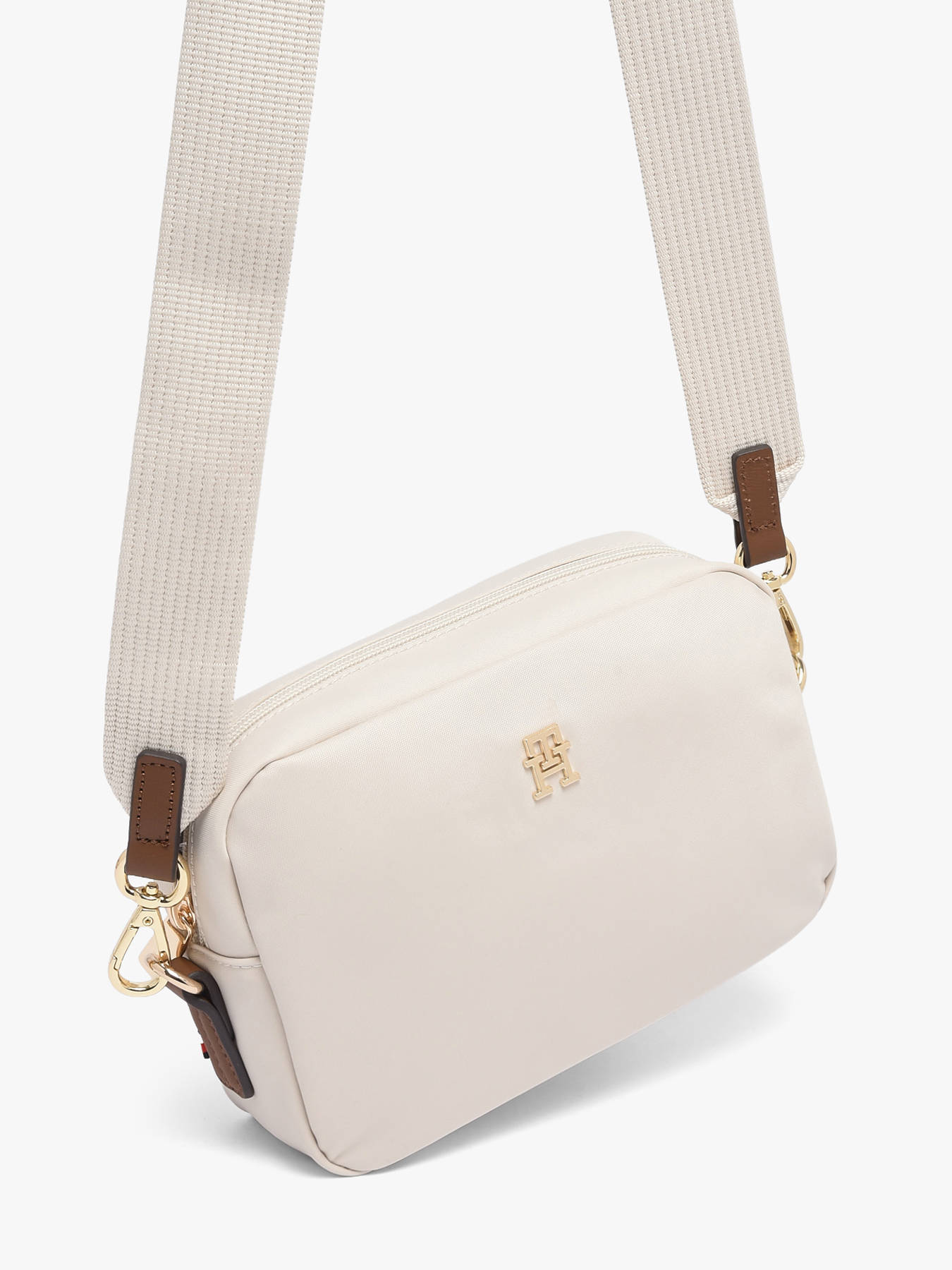 The POPETTE TOMMY HILFIGER crossbody bag in nylon with leather trim combines modern style with everyday functionality. Its zip closure keeps your belongings secure while allowing quick access to your essentials. Inside, one main compartment and a zip pocket provide organized and practical storage for your items. Compact and lightweight, this bag is comfortably worn crossbody with its adjustable strap, ensuring optimal comfort throughout the day. Its clean and contemporary design adds a chic and casual touch to any outfit, perfect for urban, professional, or casual use. The quality materials and refined finishes reflect TOMMY HILFIGER craftsmanship, making this bag a durable, practical, and stylish accessory. Versatile and trendy, it accompanies your day with elegance and simplicity, perfectly blending aesthetics and practicality.